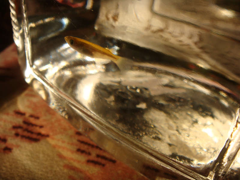 現在5Lボトルはエビの餌をメダカが食べ、メダカの餌をエビが水面をわたわたして食べ…という事になってしまい、そしてガラスの瓶の内側に藻らしきモノがひっついている状態に。。