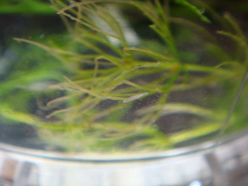 写真中央をよくご覧下さい。マツモに紛れて、細長い何かがいます。