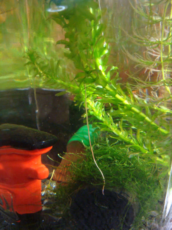 この間、メダカはボトルの中を泳ぎ周り、飾りをつんつんとつついていました。