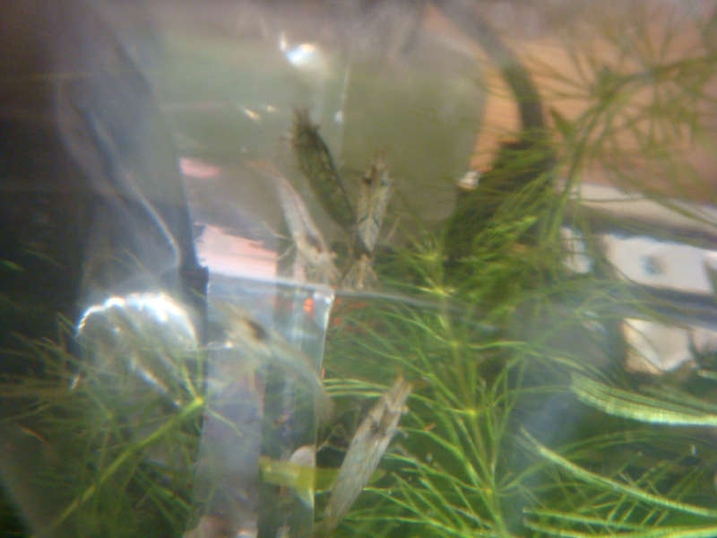 ミナミヌマエビ10匹。非常にすばしっこく、またビニール袋を入れていた袋から出した衝撃に動揺したのか、うまく写らないくらいにピンピン動いてましたが…。
