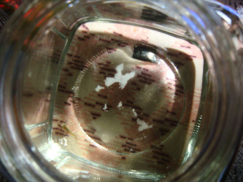 現在5Lボトルはエビの餌をメダカが食べ、メダカの餌をエビが水面をわたわたして食べ…という事になってしまい、そしてガラスの瓶の内側に藻らしきモノがひっついている状態に。。