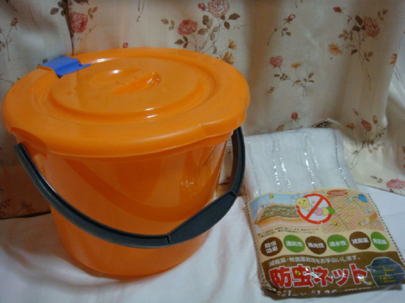 蓋付きバケツと網です。