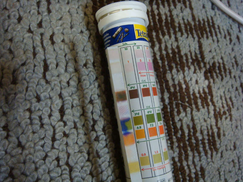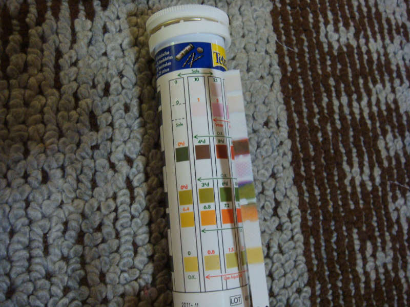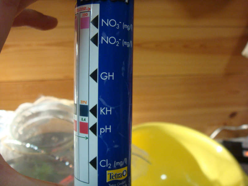 Cl2は0、pHは6.8、KHは3°d、GHは4~8°dの間、NO2-は0~1の間、NO3-は10~25の間。