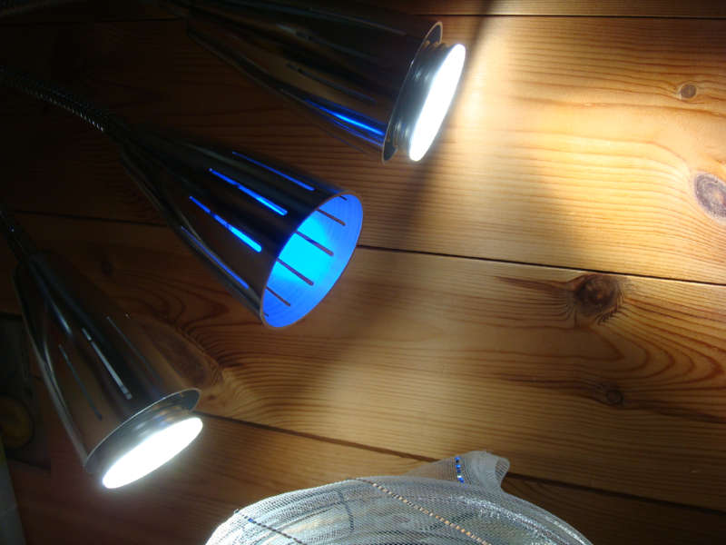 ブルーのライトはナツメ球です。本当は他の白ライトと同じようなものが欲しかったんですが、電球のサイズが合うブルーのLEDがナツメ球しかなく、仕方なく購入。