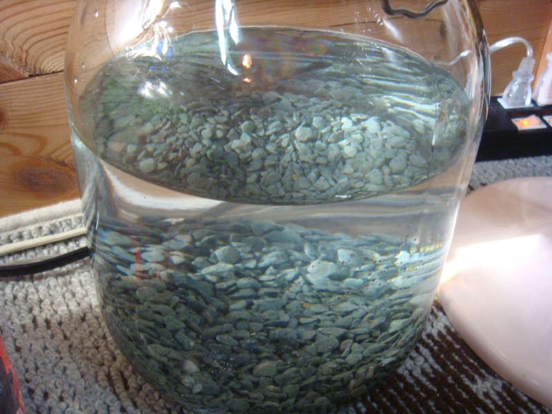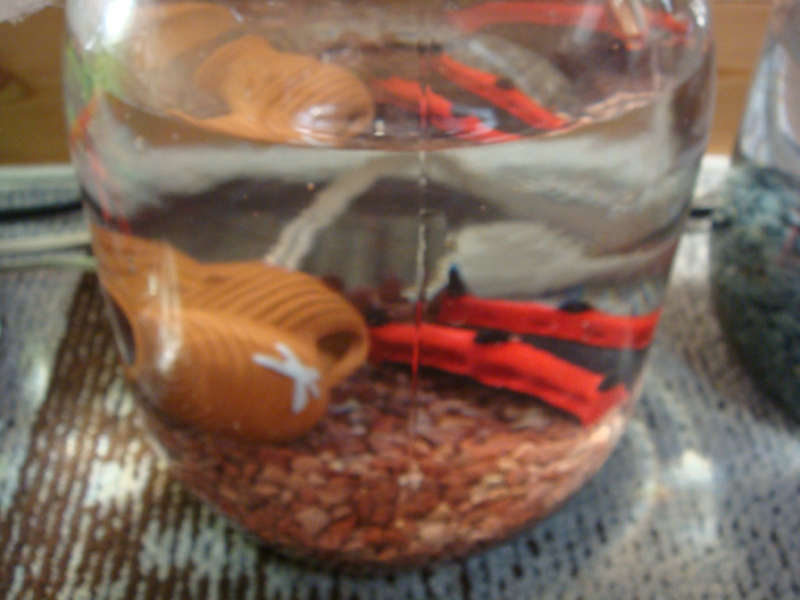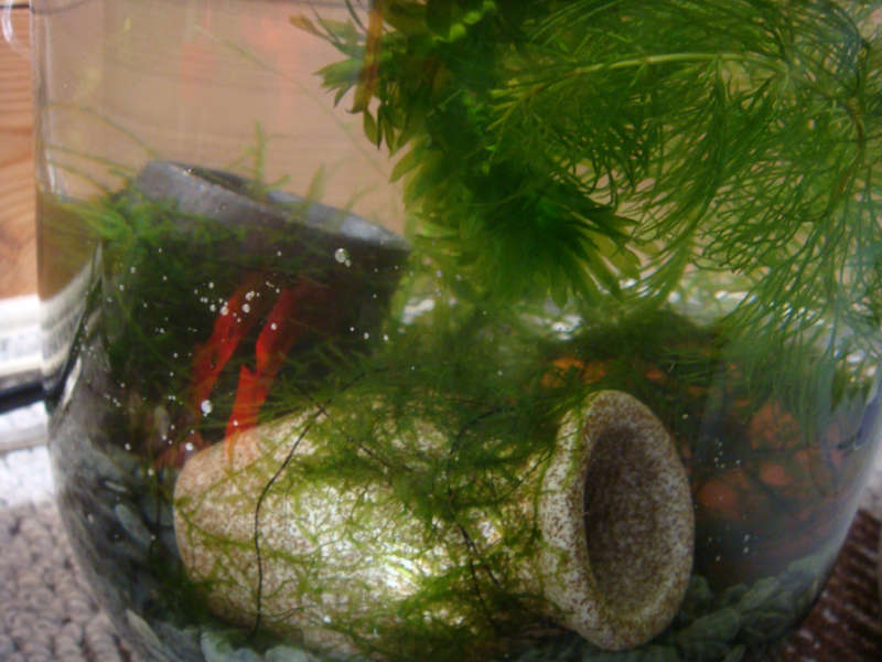 エビ用瓶なだけあり、ウィローモスの飾りばかりだったので、この時は入れていませんでした。