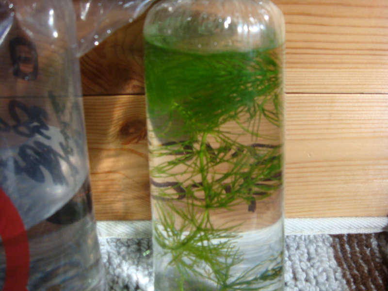一番右はマツモです。水草のダメージが酷かった5Lボトル用に1本だけ買いました。