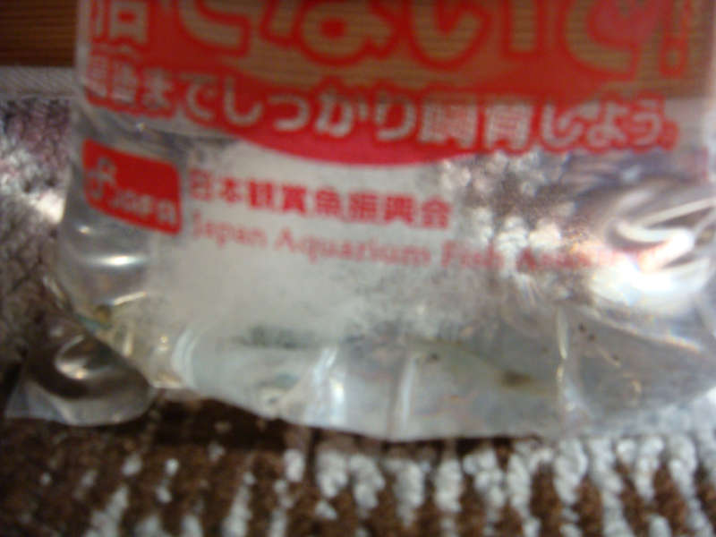 ビニール袋の口の輪ゴムはそのままにして開けずに、水槽に投入して30分以上置いておくのが本来のやり方なんですが…。