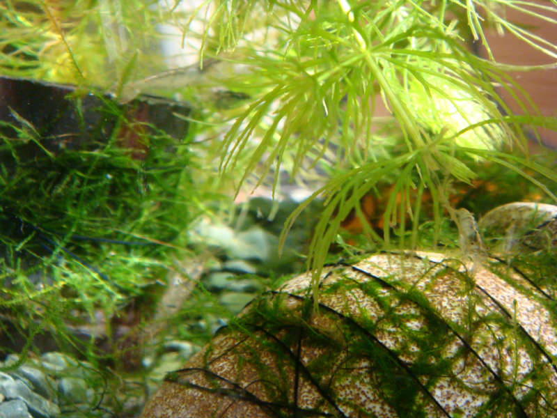 買った時にミナミヌマエビ用に入れられた綿の下で落ち着いてます。
