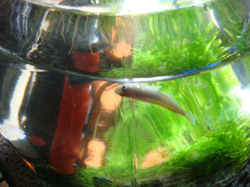 7Lボトルの中で、ただ一匹ずっと底をウロウロしていたでっかいオスメダカです。